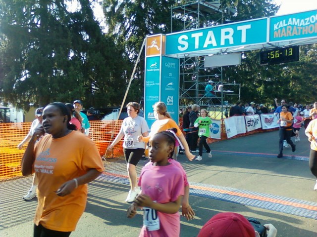 RAN THE BORGESS 5K WITH MY DAUGHTER this morning. Kalamazoo, MI was bright and sunny, with temperatures in the 50s. A bit chilly standing around, but perfect for the run itself.