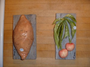 I performed my duty of picking up the latest Carol Cline pieces (my wife has collected her ceramic fruit for about 25 years) and found a colorful silk scarf for my fashionista daughter at a booth owned by one of our running group. (Stuart, I admire you for trying to sell Irish woolen clothes in this weather.)