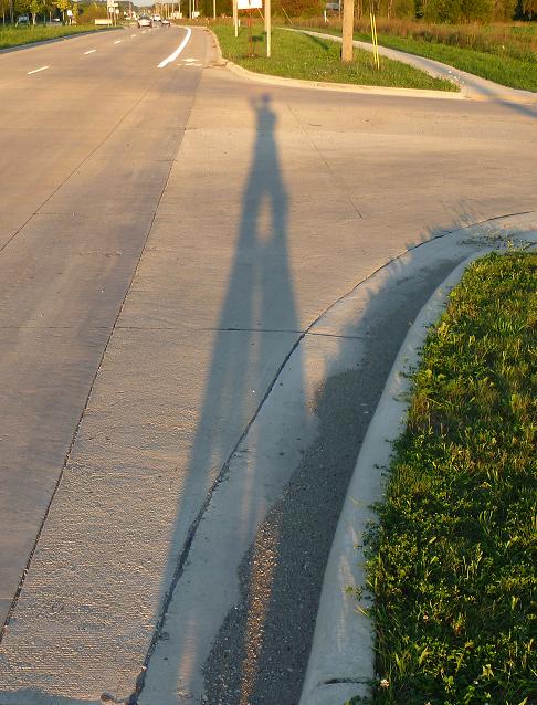 I started out on the main roads around the area, which wasn’t much fun due to traffic. And as I headed back east, the setting sun behind me cast really long shadows ahead for everything on the road. You know those scary movies where a shadow looms up suddenly behind the next guy to get the chop? That was what it felt like whenever a car came up from behind me. Freaky. So I got off the main road and into a subdivision behind Meijer, which also happened to be where we ran when I was in the Running 101 class. Seems like yesterday, but it was long ago…[1] well, okay, January of 2010. Very hard to believe it’s been over a year and a half since I trod those streets with Mandi and the rest of the group.