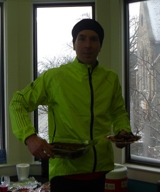 So what’s it like to run in subzero conditions, I hear you asking? Well, it isn’t very much fun. While my core actually warmed up fairly quickly, my face never really adjusted to the cold, especially when running into the wind. Uphill. On a snowy, slippery road. For over a mile. But the sun came out as I headed south down Plymouth Road, and my final miles back to town were nearly tolerable. Some chocolate chip cookies and marshmallow brownies back at the store restored my soul enough for the drive home.