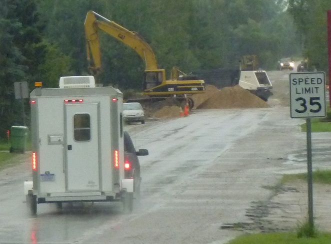At this time that my loving wife texted me, asking how I was doing. My reply – It’s raining, I’m on a dirt road in the middle of nowhere, and I’m pissed – reflected that it was one of the low points of the entire trip. I turned around and slogged back through the mud, and found the paved road on the other side. Things improved from there, and hot coffee and pastries in Reed City restored my soul. “Grandma Jean” (her chosen moniker) told me it’s a nice town, but it suffers from the problems a lot of small towns share – overdependence on one large employer, and “big box” stores taking business away from the mom-and-pop shops. In Reed City’s case the employer is Yoplait, who was late to the Greek yogurt craze and has suffered a large sales drop, resulting in layoffs.