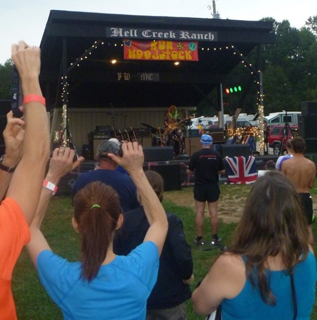 At 7:30 the 5K runners were summoned to the stage area, where Lemon James, a local Hendrix-style guitarist, performed the Star Spangled Banner ala Hendrix at the 1969 original Woodstock. It was interesting, but it felt strange standing with my hand over my heart while she went into wild improv riffs toward the end. Did those count as part of the national anthem? Was this really being respectful to our country? I decided to stop worrying and just go with the flow, an attitude that, as it turned out, would serve me well during the weekend.