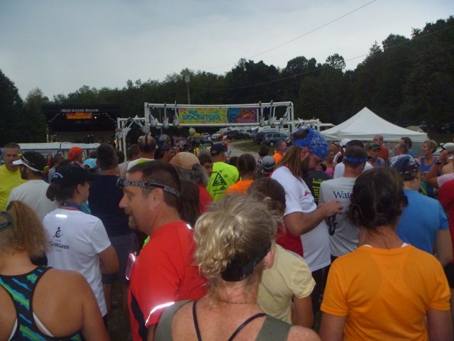 Then, after some explanation of the course to follow, including the “natural option” (more on this later), we gathered in the starting chute and off we went. The run itself was pretty uneventful, but I got to test my new headlamp (great) and check my shoe strategy. Since rain was forecast and I figured my shoes would be destroyed on the muddy trails, I chose to use an old pair of running shoes into which I’d put some foam inserts. They worked like a charm. All was set for Saturday morning. All I had to do was get myself out of bed at 5:00 a.m. to get there by the 6:00 starting gun.