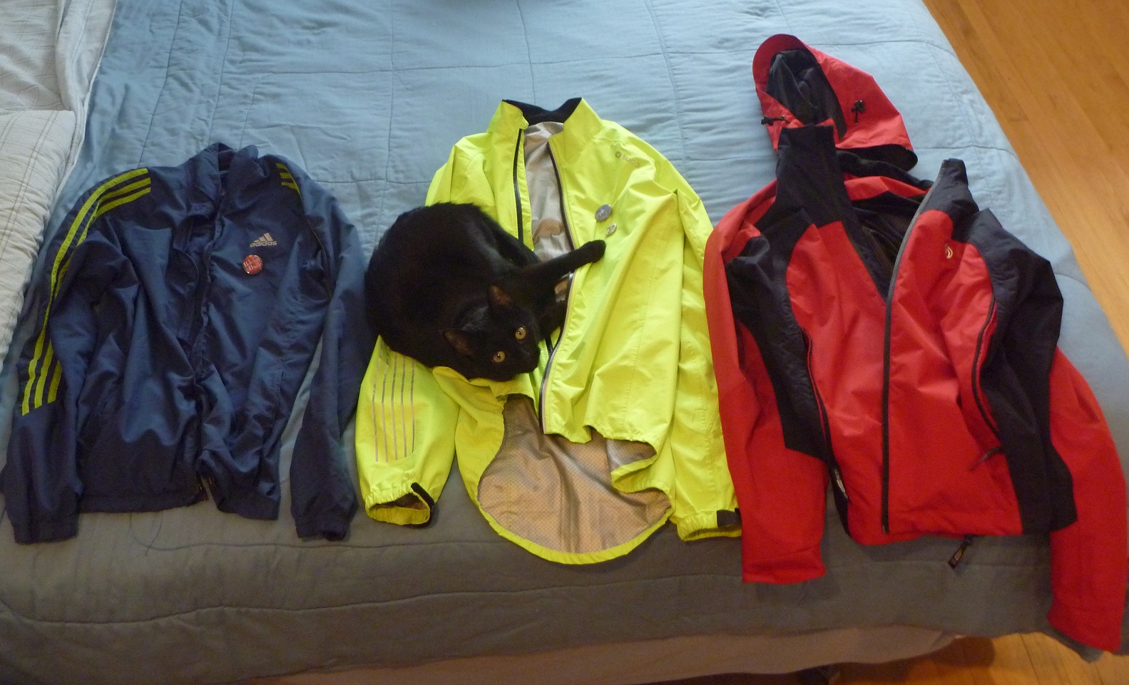 If it’s really cold, I can double up on the tights and use the hooded red jacket, which is specifically designed for winter running. It’s surprisingly light and comfortable for how warm it keeps me – so warm, in fact, that I have to use it carefully to avoid sweating too heavily.