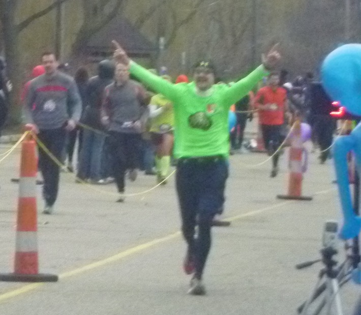 But the most interesting event for me occurred after the race. Around mile 8 I’d taken off my hat and gloves and put them in my jacket pockets. I had this odd feeling that I’d lose my hat, so every so often I patted my pocket to make sure it was still there. (Yes, my jacket pockets have zippers. Don’t ask.) So as I cooled back off after I finished, I reached into my pockets – and my hat was missing.