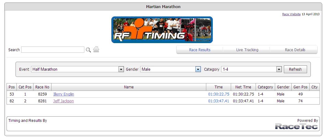 There were other surprises, too. When I got there, I couldn’t locate my name on the bib list, and they had no record of my registration. No problem – they registered me there, and I got a number. Then after I finished, I couldn’t find my results! My age had been entered incorrectly, and my time was posted in the 1-4 age group. The good news was that the corrected results put me second in the 50-54 age group – the first time I’ve broken the top 10 in a half marathon, and good for a spot in the top 100 overall, too.