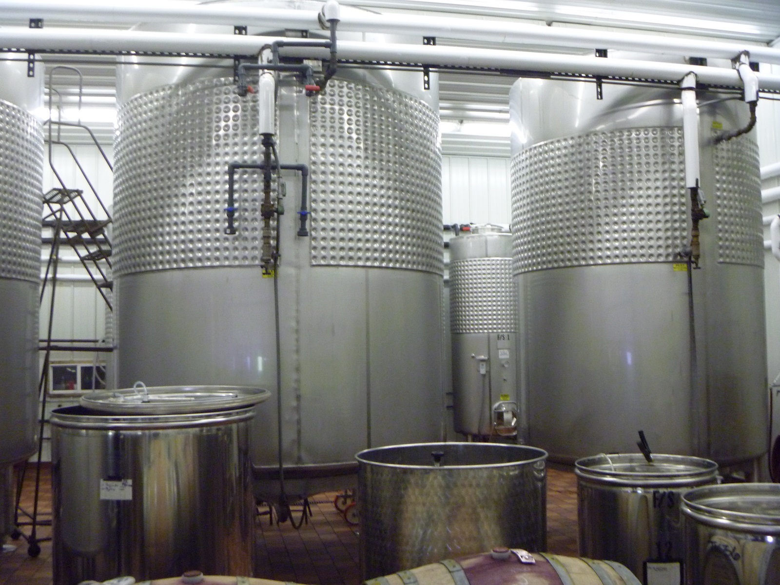 The large vats you see here are where the wine ferments. The grape skins collect at the top of the vat and are skimmed off for white wine, or forced back down into the fermenting juice to color it for red wine. Don told us that recently a worker fell into one of these vats and drowned. “His end would have been quick,” he said, “but he got out six times to use the bathroom.” (*)