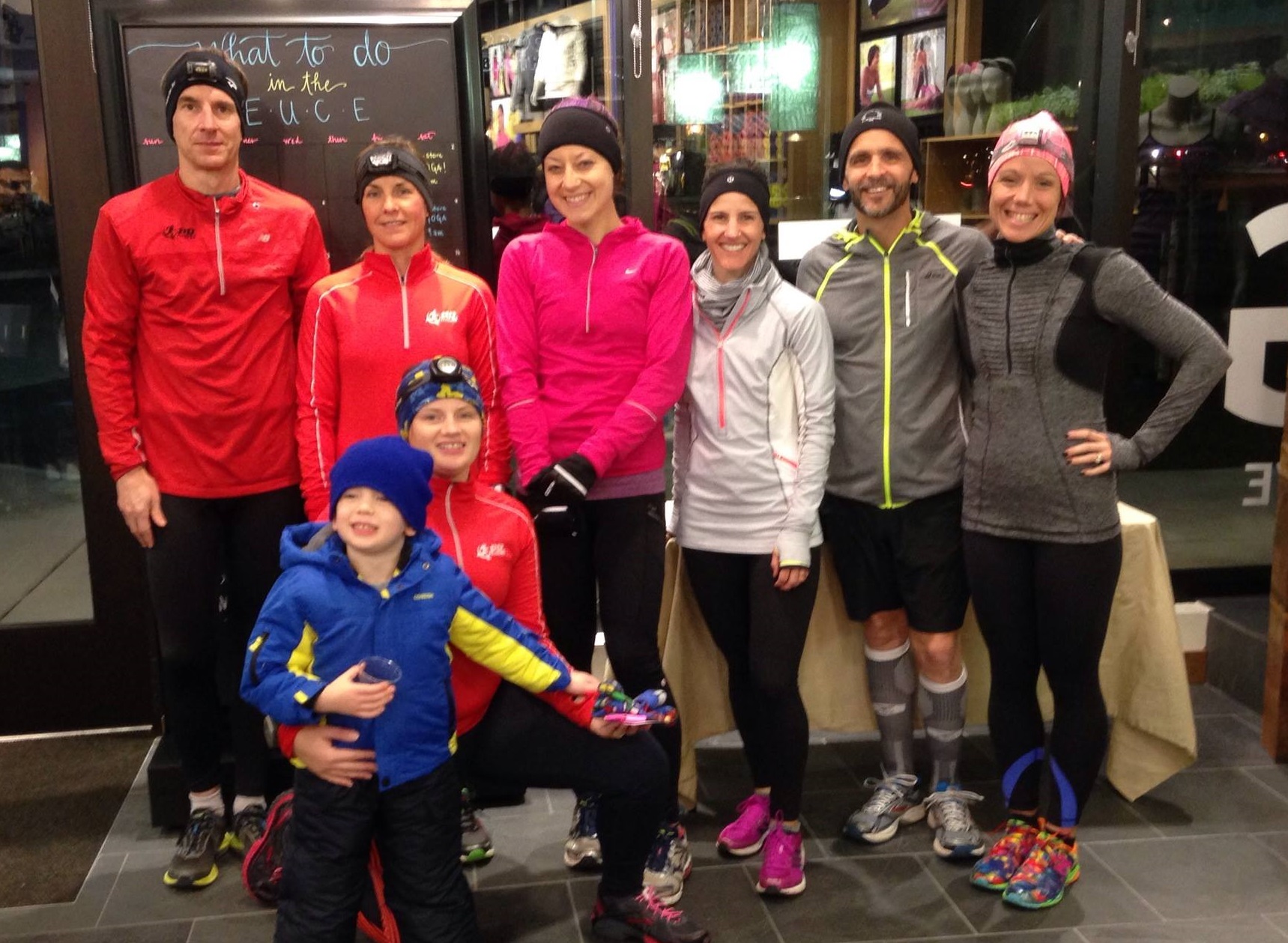 Wednesday night's group at Lululemon. Zip up the warm tech shirts, put on the headlamps and hit the road!