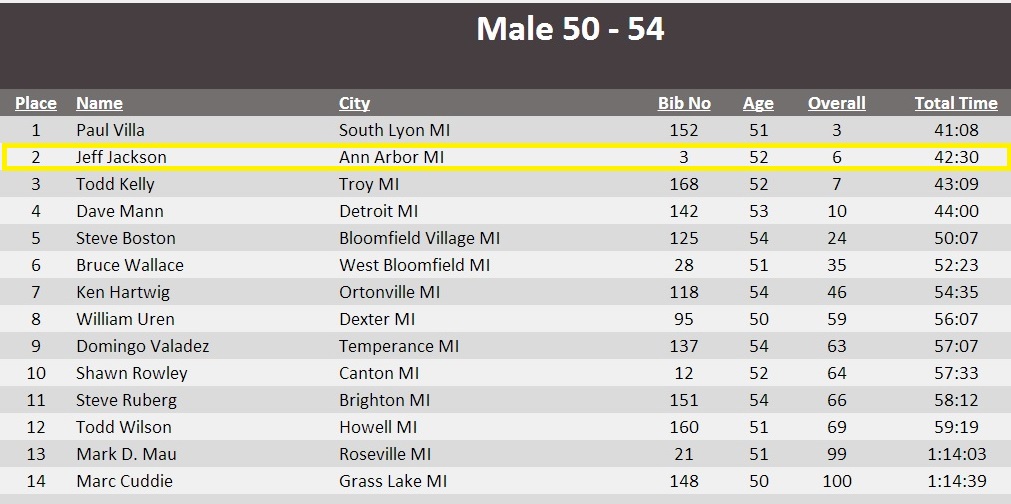 I crossed the finish line pretty sure I’d done well. And the initial posted results had me in 12th place overall, out of about 120 total. Quite satisfactory, although I had to settle for second in my age group.