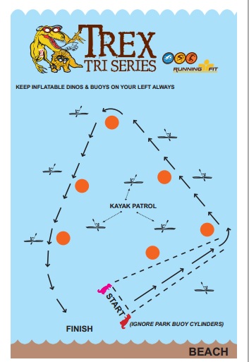 “BE SAFE OUT THERE,” the race organizer said, standing in the water by the inflatable dinosaur. “Grab onto a kayak if you need a break.” (He was looking at me. I know he was.)