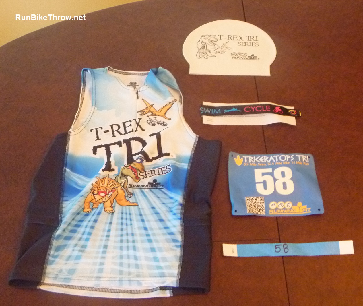 A triathlon is a swim, bike, and run event, completed in that order. Perhaps the most famous is the Ironman: 2.4 mile swim, 112 mile bike ride, and 26.2 mile run (yes, a marathon) for 140.6 miles total. Other popular distances include the half Ironman (70.3 miles), the Olympic distance (51.5 km, or 32 miles), and the so-called “sprint triathlon” (0.5 mile swim, 12.4 mile bike ride, 5K run). The Running Fit T-Rex series I signed up for are sprints.
