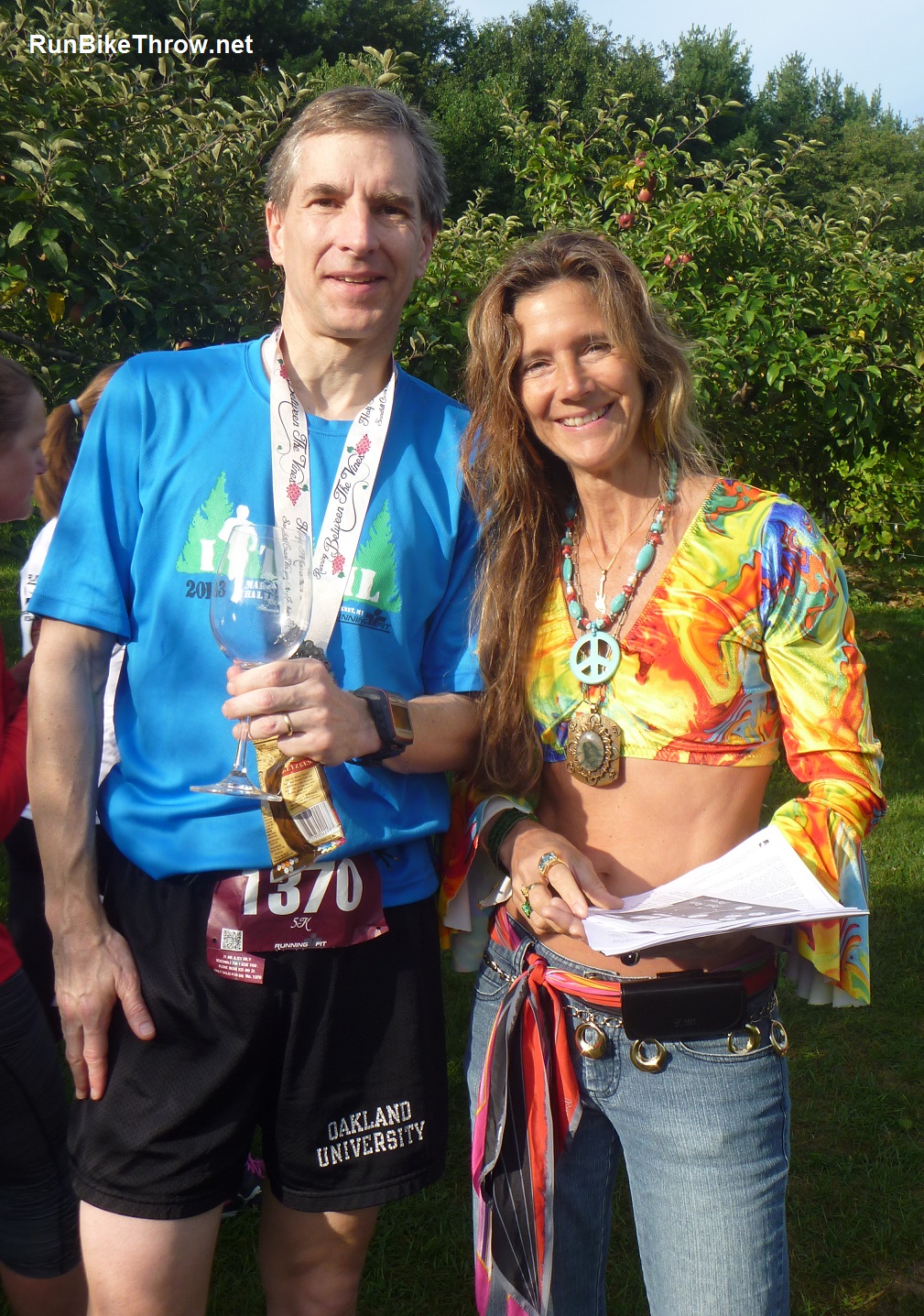 Down the final stretch and back into the vineyard. The finish line appeared, and I surged through it. Second overall! The third place finisher was only six seconds behind. I wonder what his thoughts had been regarding me?