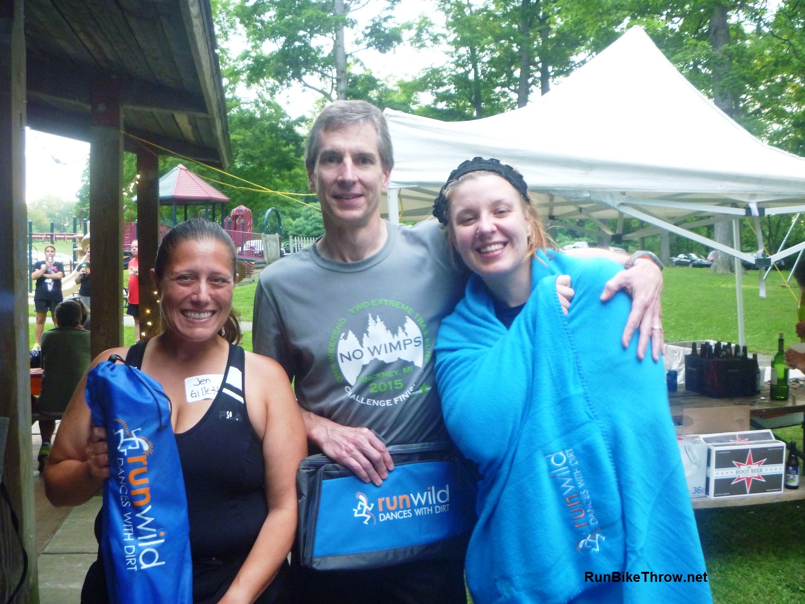 Our prize was first crack at the swag table, piled high with shirts, mugs, and other race prize paraphernalia. I spied a Dances with Dirt gym bag – perfect as a drop bag for trail ultras. Mine!