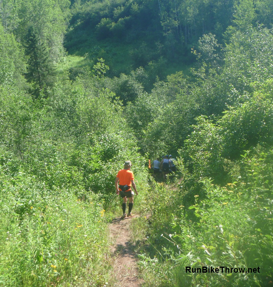 The good news here is, you’re out of the woods. But you’ve entered the infamous Power Lines. There were about five of these ravines to deal with – muddy on the way out, broiling hot on the way back. And don’t slip.