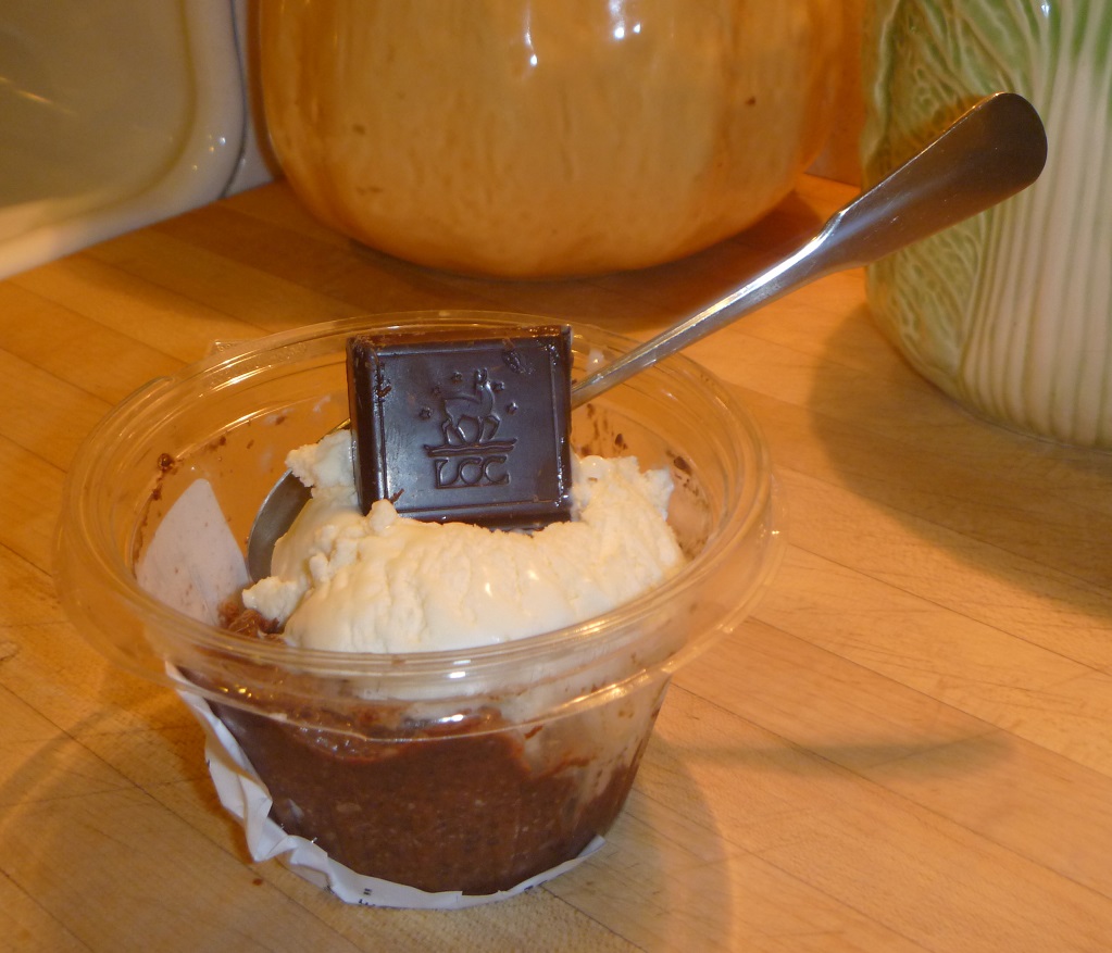 And finally, a cautionary tale. I was browsing the obesity-inducing counter at Whole Foods – the desserts where you gain weight just looking at them. I was trying to choose between the half-pound chocolate mousse cake and its vegan equivalent when I came across this – a faux chocolate pudding made with chia seeds and almond milk. Way too healthy, but I was intrigued, so I gave it a try.