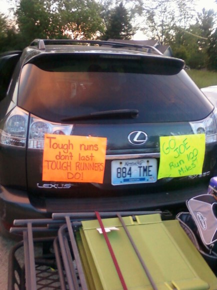Our unanimous answer to Joe’s question was, of course, yes. In a 100-mile race, every runner has sore feet by this point. Anyone who says otherwise is, to put it politely, a lying bastard. This was Joe’s first 100, so he was forgiven for thinking he was a weakling when in fact he was anything but.