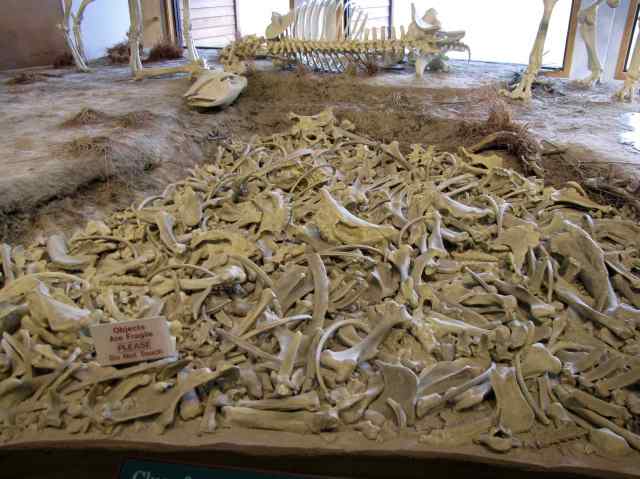 Along this road is the Agate Fossil Beds National Monument, one of the largest fossil finds in the US from about 20 million years ago. Thousands of bones were found from early ancestors of wolves, rhinos, micro-camels (2′ tall!), prairie dogs and boars. This photo is a representation of one of the first pits to be uncovered. Talk about a challenging jigsaw puzzle!