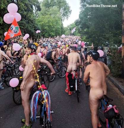 Curiously, I saw entire families at the sides of the road, including kids of all ages. I guess if you want to teach them body positivity, that’s one way. It was Portland, after all.