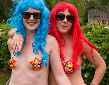 Officially, the WNBR is a protest against excessive use of fossil fuels and the far too many car-bicycle accidents. Lately it’s added body positivity as a theme, and indeed I saw all ages and all body types there, naked and not ashamed.