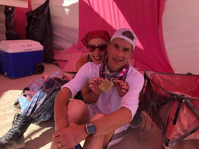 The race is hosted by the Pink Lightning camp, which provides bibs, timing chips, medals, T-shirts, and refreshments – all for no charge to the runners (excepting the crazy expensive Burning Man ticket, of course). About 250 people sign up each year.