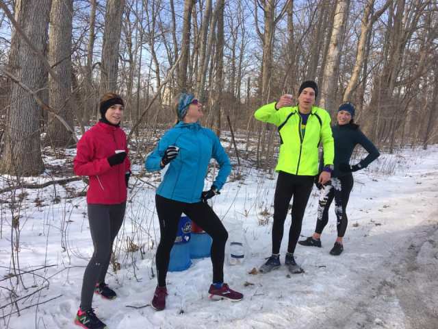 Due to a nagging back issue, I’ve trained less hard in the gym this winter. And I’ve run fewer miles than usual, too. When it’s close to zero degrees outside day after day, and the roads and sidewalks remain treacherous, it’s tough to maintain motivation and consistent mileage. Thank goodness for PR Run Club. Without them, I’d have been strongly tempted to sit on the couch and bitch about the weather, rather than lace up and bitch about the weather while we climb a nice snow-covered hill.