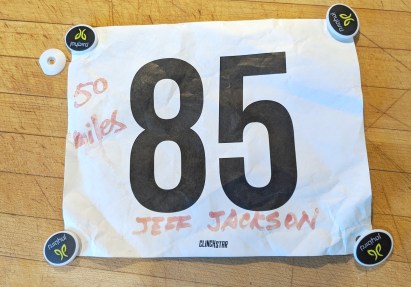 I picked up my race bib at the race tent behind Beaver Dam Station Friday afternoon. My race didn’t start until Saturday, so I went up the road for a five-mile “dress rehearsal” run in full gear. This included testing my new snap-on bib attachments. They don’t put holes in your clothing like safety pins, but I needed to make sure they wouldn’t fall off.