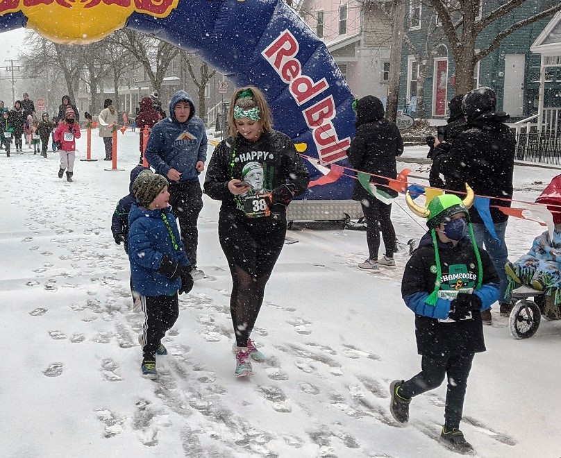 Last Saturday’s Pi Day 5K and Sunday’s Shamrocks & Shenanigans 5K took place in perhaps this winter’s final fury. Both mornings started below 20 degrees, with wind chills near absolute zero. On Sunday it snowed. Water bottles froze. I froze. If you think running a 5K in the cold is hard, try standing around for a few hours.