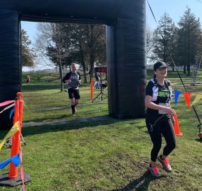 The field had spread out by then, so there weren’t a lot of people to chase down and pass, but a managed a few. And a few managed to catch and pass me, but dem’s de breaks. And so I pushed on through the woods, and crossed the final boardwalk and onto the grass by the Silver Lake beach. Just a couple hundred yards to the finish. And up ahead of me was one more person I could catch. A young woman. Not even my gender, let alone in my age group, but you work with what you’ve got.