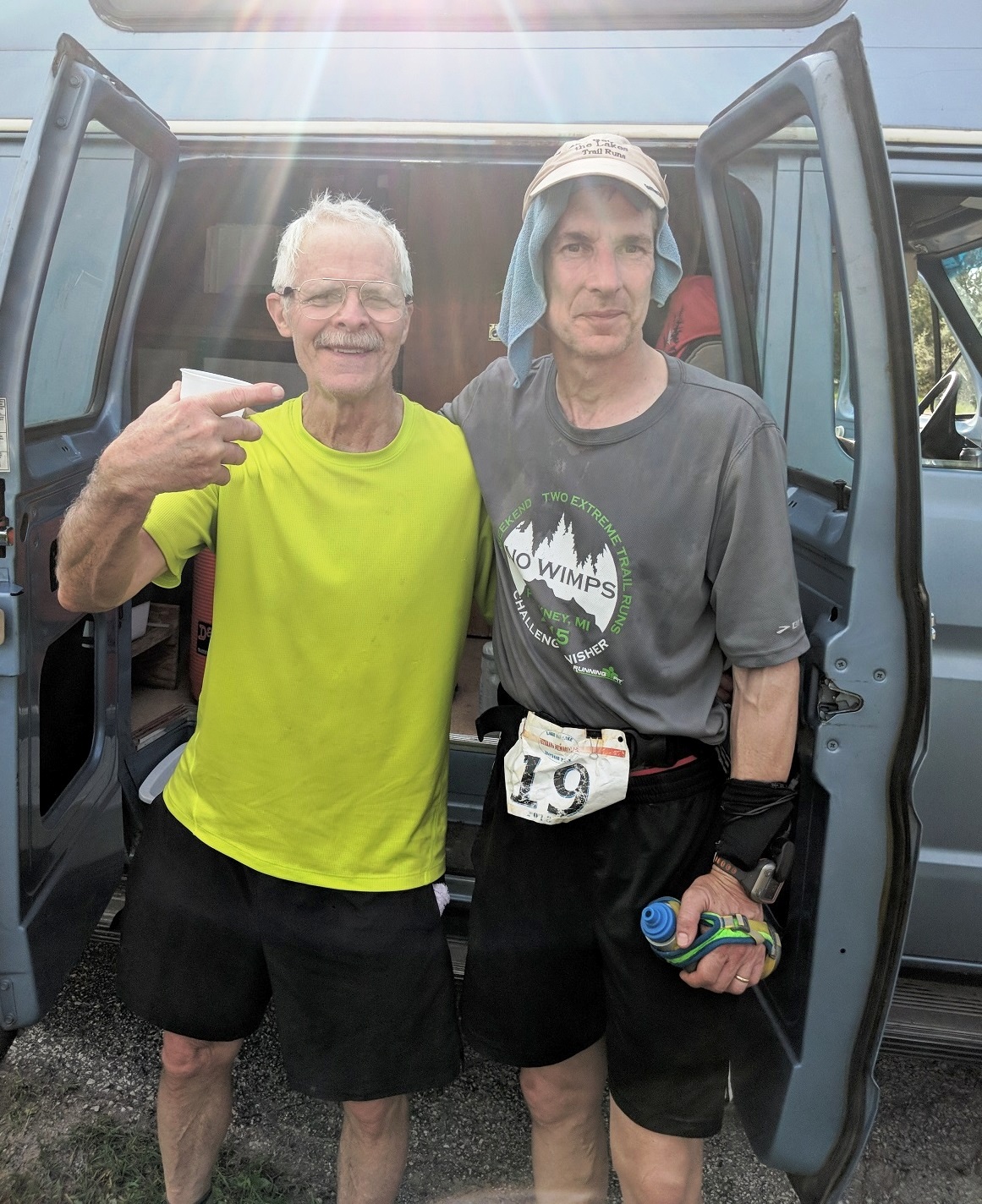 Charlie (left) pacing me at the 2018 VM150, when he was a young punk of 71.