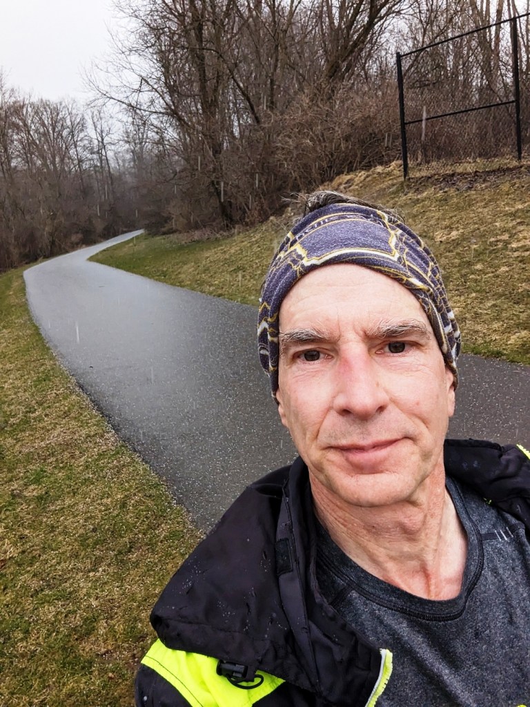 I went out for my regular Saturday long run knowing bad weather was on the way. But the morning was sunny and bright, so inviting I never considered skipping the run, or waiting until the afternoon. And it was warm enough (40s) that getting wet wouldn’t be a big deal, as I get plenty warm during runs. So out I went.