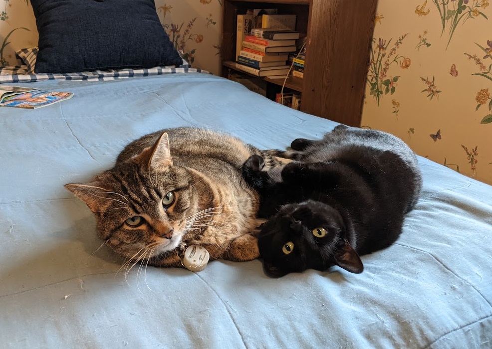 I was grateful for it all; the support, the hugs, the stories, the wonderful care the hospice team provided. And our very social cat Buster (below, left) was in kitty heaven with all the attention he got. But I also looked forward to things settling down again. Last Saturday my daughter Rachel, who graciously stayed an extra week, returned home to Denver, and I’m easing into living alone for the first time ever.