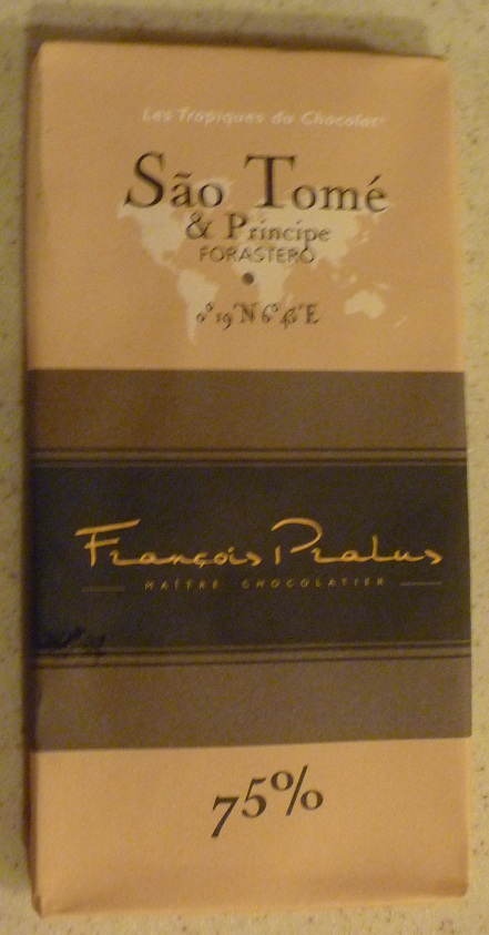Where I got it: Zingerman's Next Door, Ann Arbor MI Price: $9.99 for 3.5 oz. (100g) Cocoa percentage: 75% Website: www.chocolats-pralus.com The Sao Tome bar is one of a family of single-plantation chocolates from Pralus. I got this bar as a Christmas present from my daughter Rachel (have I mentioned that she works at Zingerman's?). It's about the …